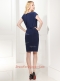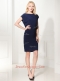 Stunning Navy Blue Cap Sleeves Mini Length Ruffles Zipper