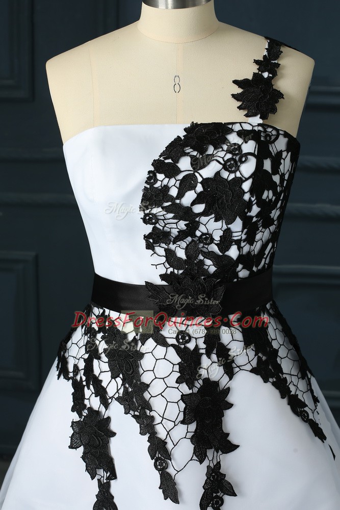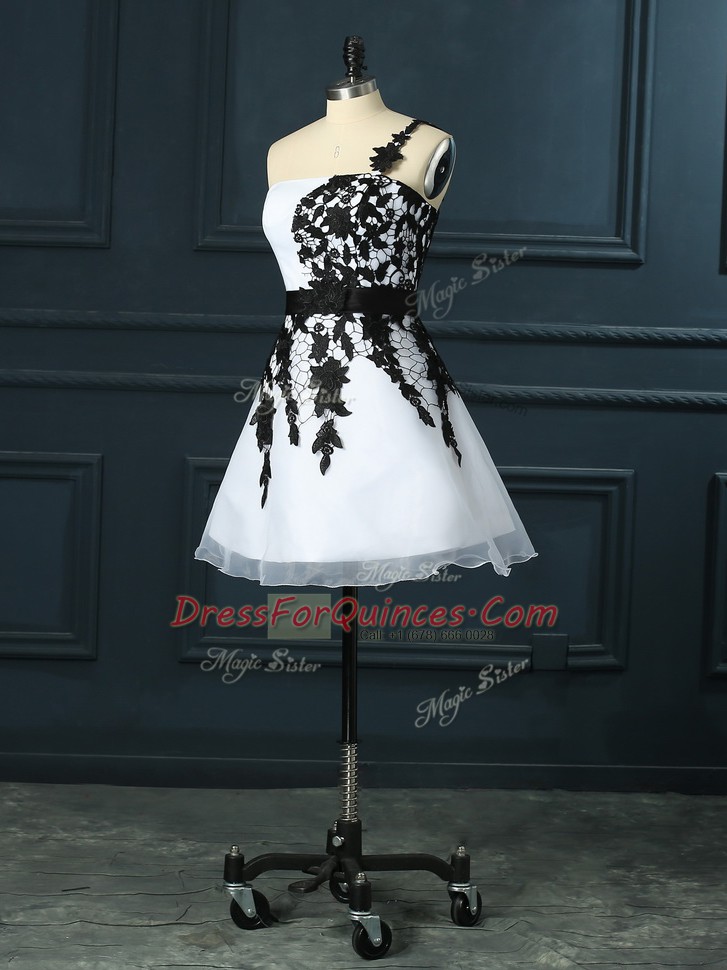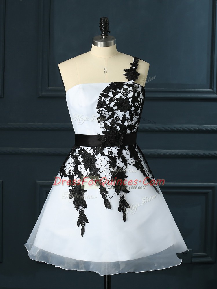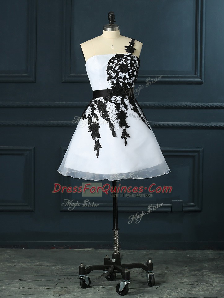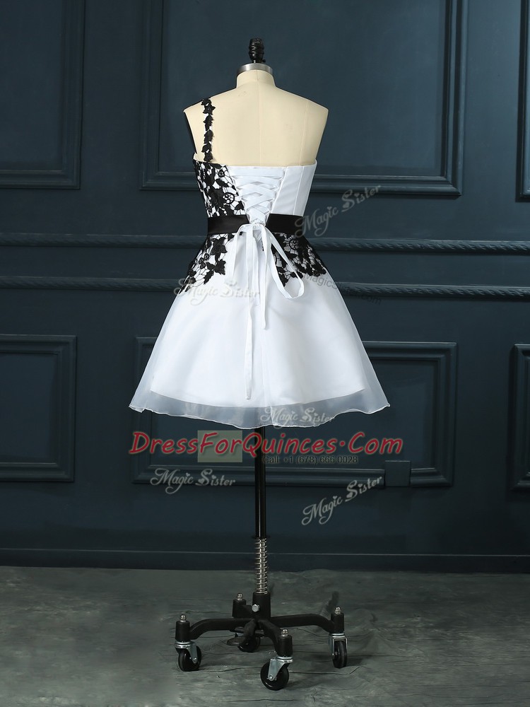 Stunning White Organza Lace Up Sleeveless Mini Length Lace and Appliques