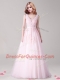 Superior Baby Pink Prom and For with Appliques and Belt V-neck Sleeveless Backless