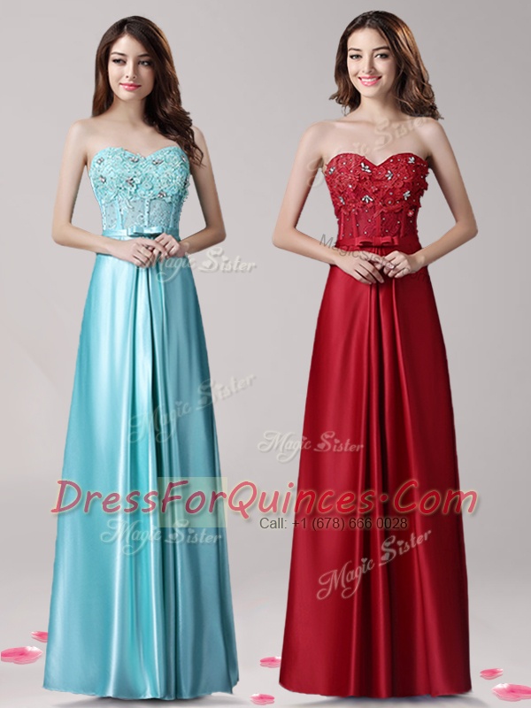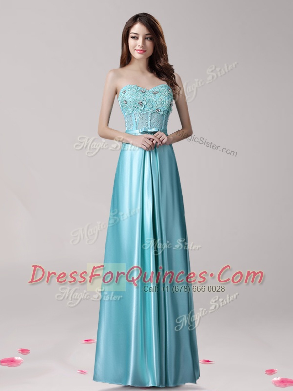 Superior Sleeveless Zipper Floor Length Beading and Appliques and Bowknot Prom Party Dress