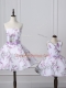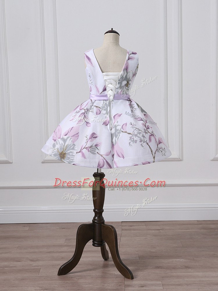Trendy Sleeveless Printed Mini Length Lace Up Homecoming Dress in Multi-color with Belt