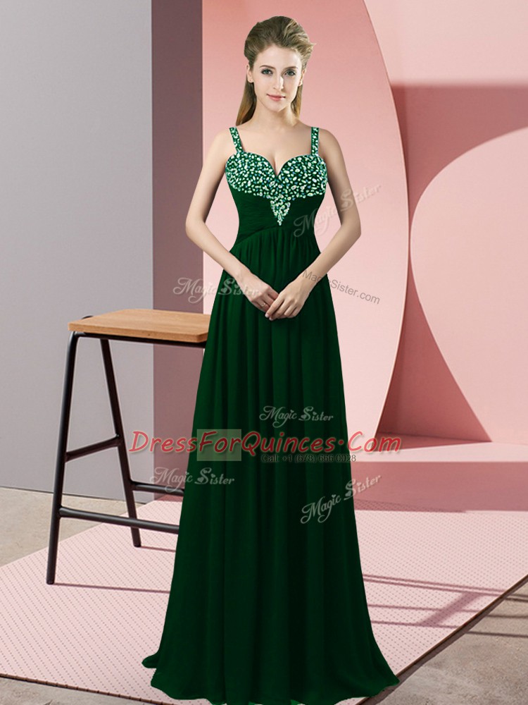 Trendy Straps Sleeveless Zipper Prom Evening Gown Dark Green Chiffon
