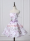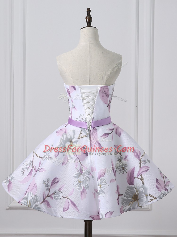 White A-line Belt Lace Up Printed Sleeveless Mini Length