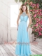 Wonderful Beading Baby Blue Long Prom Dresses for 2016