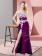 Zipper Prom Dresses Eggplant Purple for Prom and Party and Military Ball with Lace and Appliques
