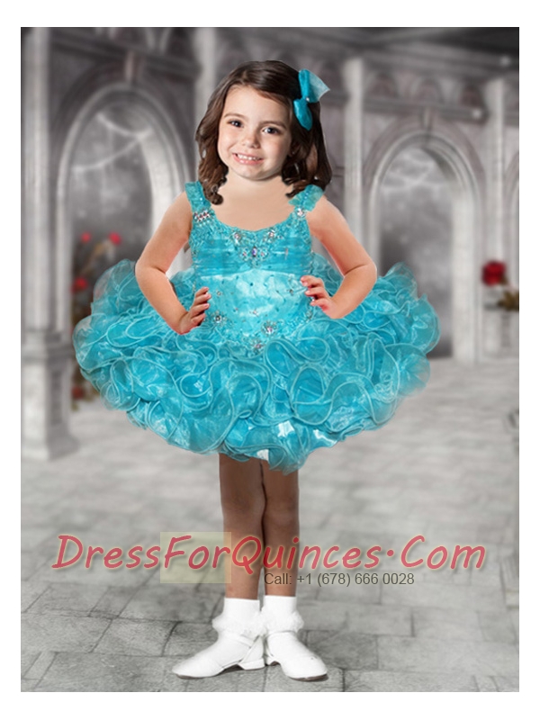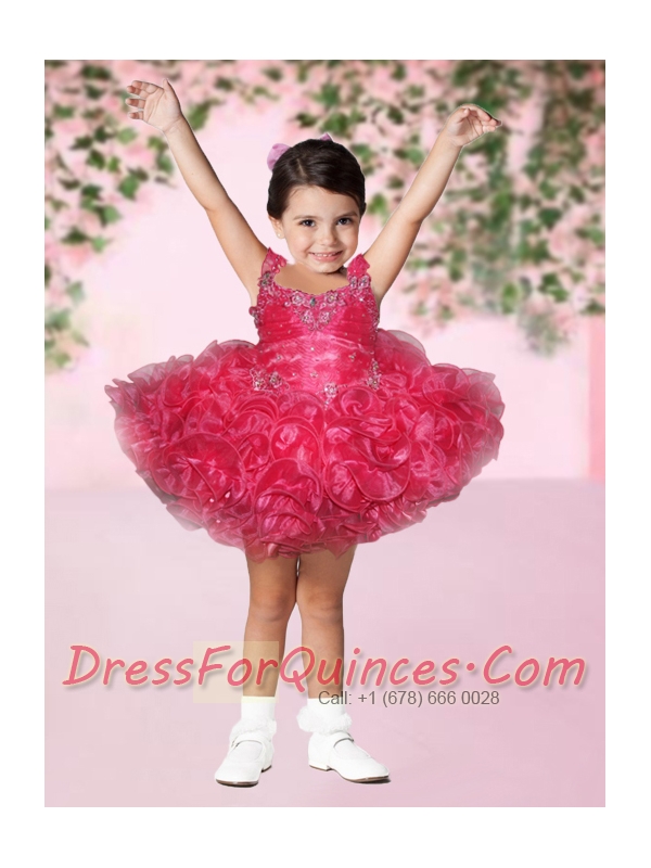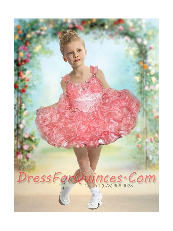 2014 Luxurious Straps Short Beading and Ruffles Watermelon Little Girl Dress