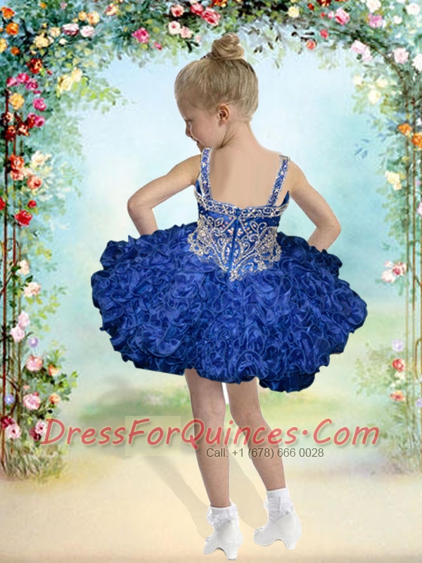 2014 Pretty Ball Gown Beading and Ruffles Knee-length Little Girl Dress with Straps