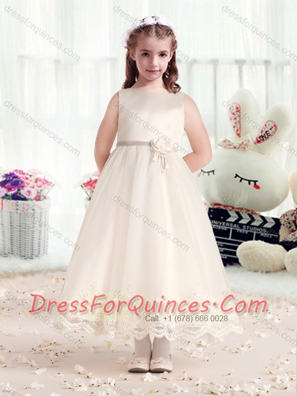2016 Beautiful Scoop Flower Little Girl Dress with Hand Made Flowers