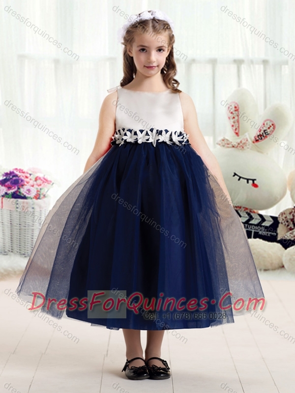 2016 Most Popular Bateau Empire Flower Little Girl Dress with Appliques