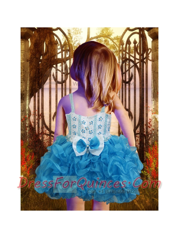 Ball Gown Straps Mini-length Blue Little Girl Dress with Bowknot