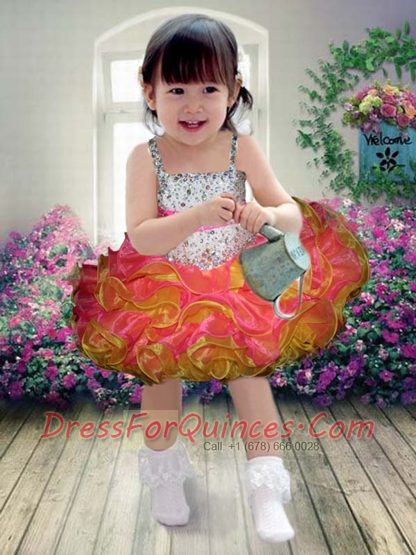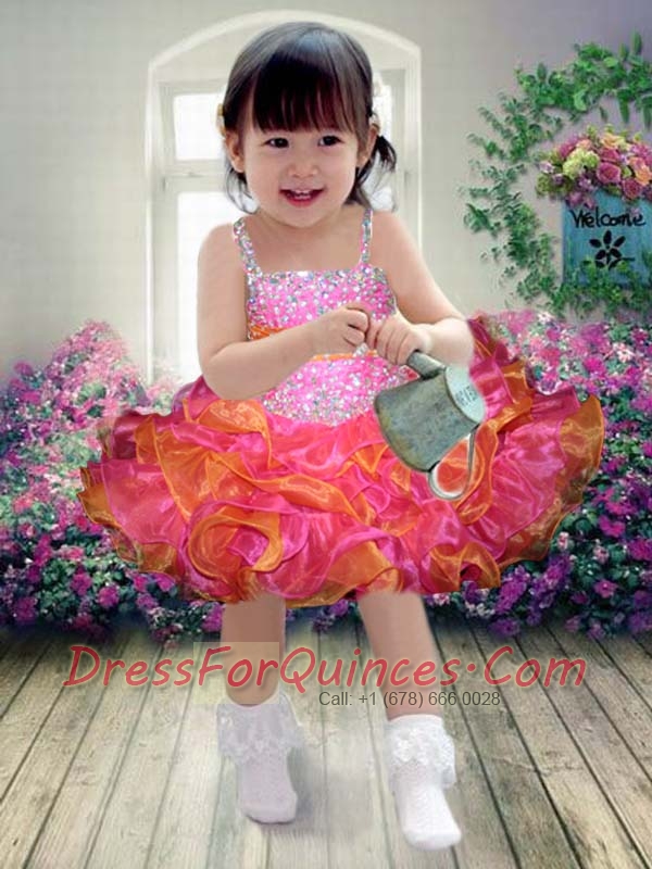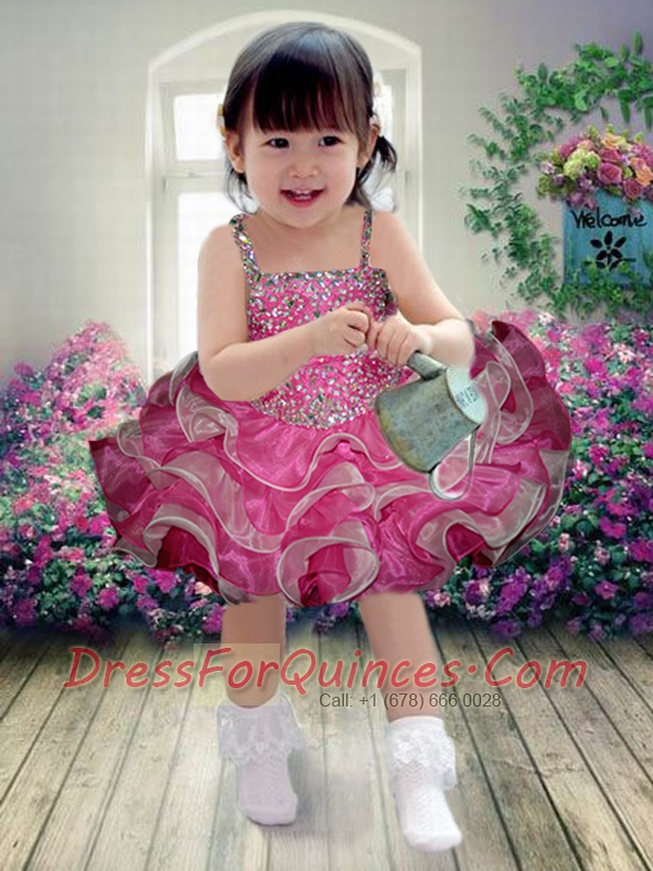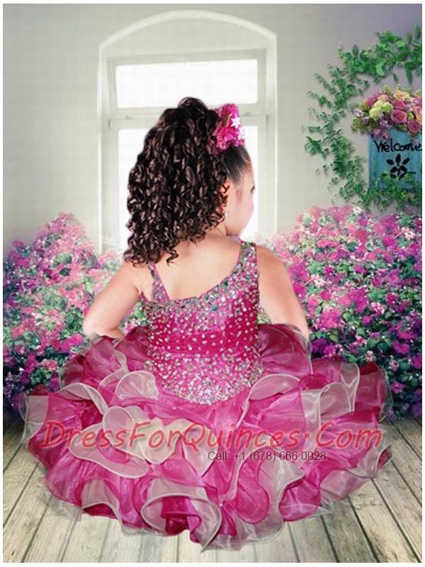 Beautiful Hot Pink Beading and Ruffles Knee-length Little Girl Dress with Asymmetrical