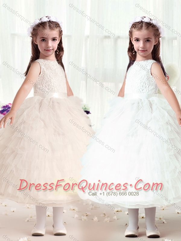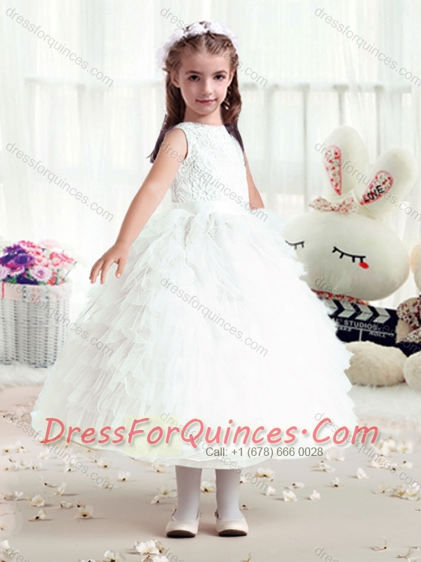 Hot Sale Ball Gown Bateau Flower Little Girl Dress with Ruffles