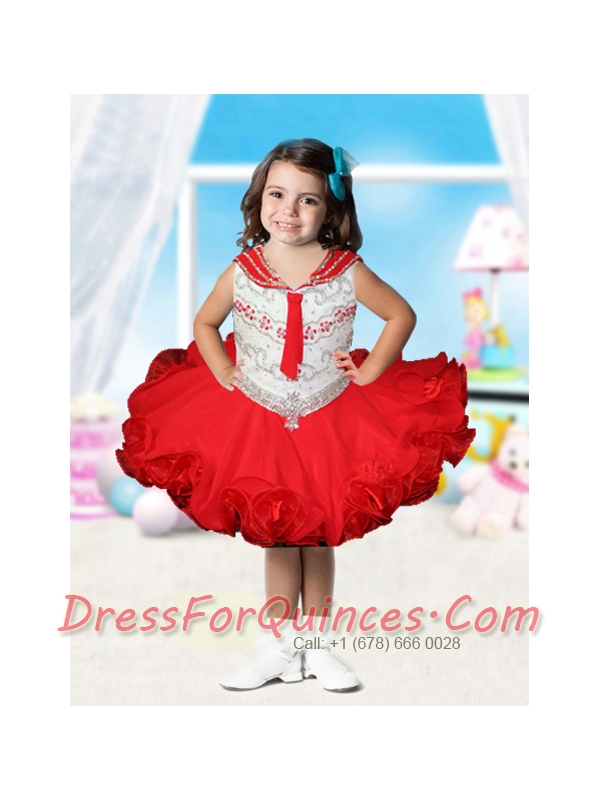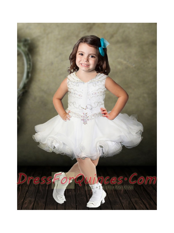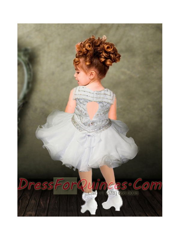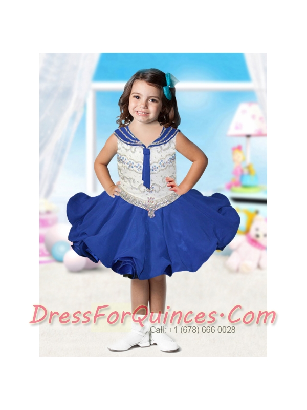 Luxurious Scoop Knee-length Beading Little Girl Dress in Blue