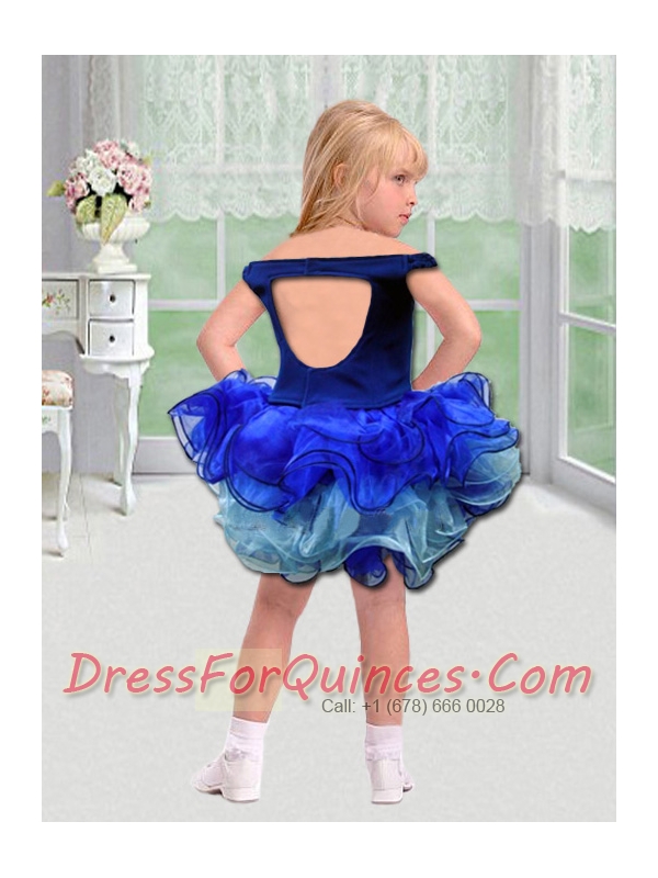 Popular Ball Gown Off the Shoulder Mini-length Ruffles Royal Blue Little Girl Dress