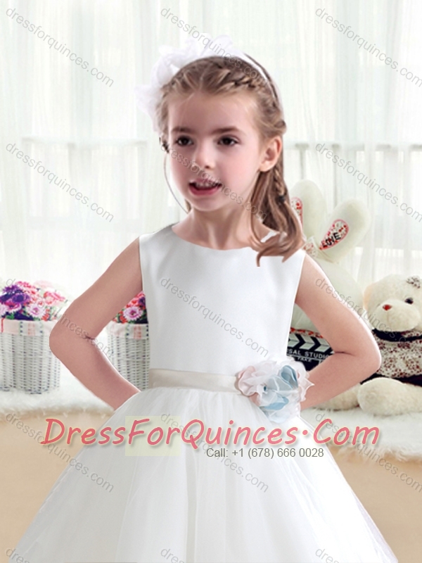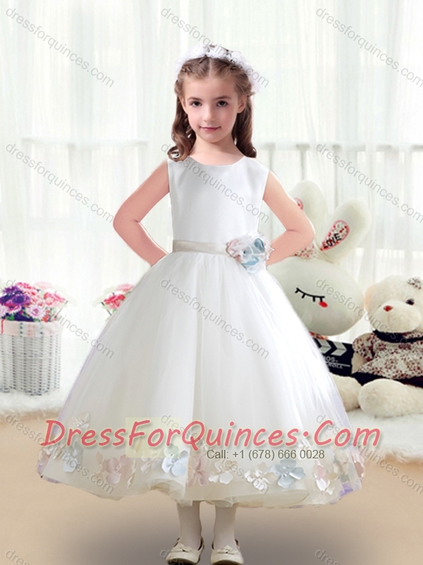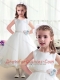 Top Selling Scoop White Flower Little Girl Dress with Appliques
