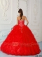 2013 Red Ball Gown Sweetheart With Floor-length Satin and Organza Beading Quinceanera Dress