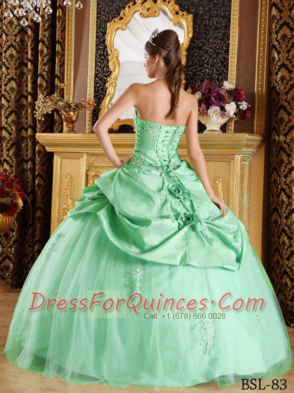 2013 The most Popular Quinceanera Dress In Apple Green With Ball Gown Style And Strapless With Tulle and Taffeta Beading