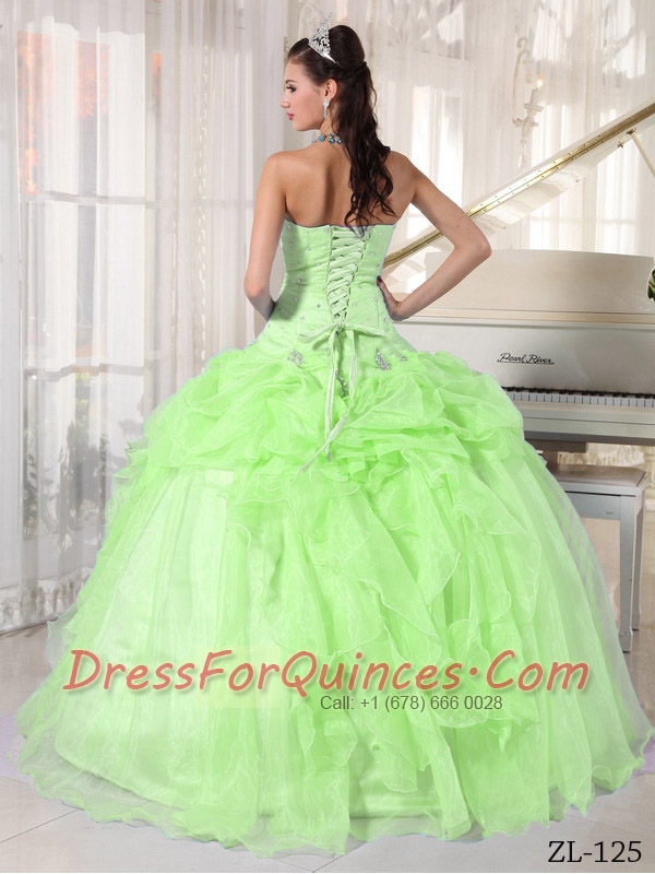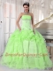 2013 Yellow Green Ball Gown Strapless With Floor-length Organza Beading Quinceanera Dress