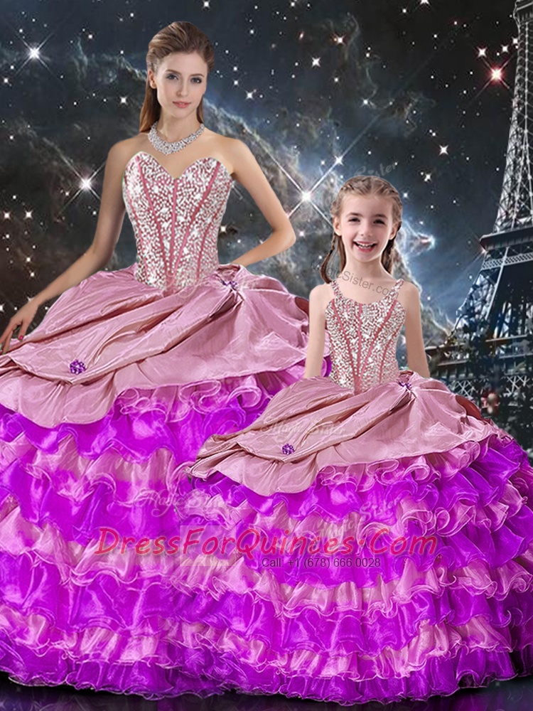 Amazing Sleeveless Lace Up Floor Length Beading and Ruffles Sweet 16 Dress