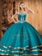 Ball Gowns Quinceanera Dresses Teal Sweetheart Organza Sleeveless Floor Length Lace Up