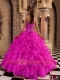 Cute Hot Pink Ball Gown With Sweetheart Floor-length Ruffles Organza Quinceanera Dress In 2013