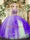 Edgy Scoop Sleeveless Lace Up Sweet 16 Dress Lavender Tulle