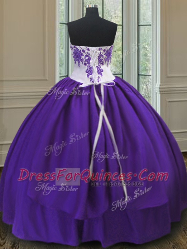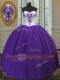 Eggplant Purple Taffeta Lace Up Ball Gown Prom Dress Sleeveless Floor Length Beading