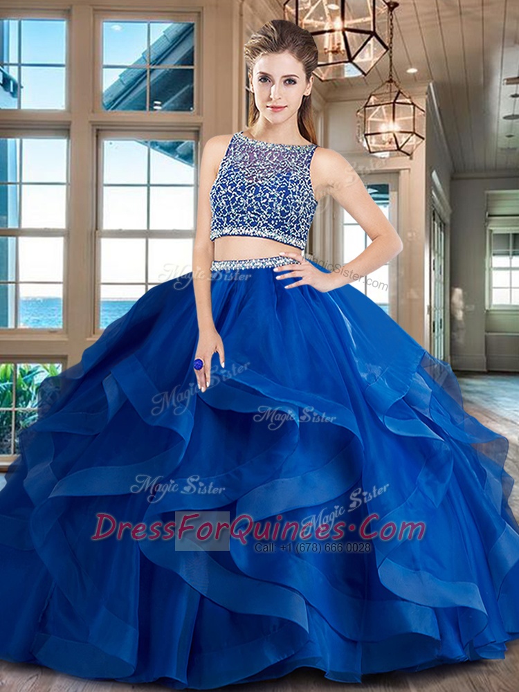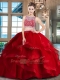 Elegant Floor Length Two Pieces Sleeveless Red Sweet 16 Quinceanera Dress Side Zipper