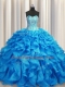Elegant Visible Boning Baby Blue Sleeveless Beading and Ruffles Lace Up Quinceanera Gowns