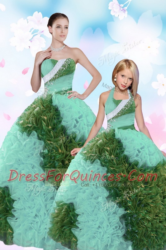 Exquisite Fabric With Rolling Flowers Sweetheart Sleeveless Lace Up Beading and Sequins Sweet 16 Dresses in Turquoise