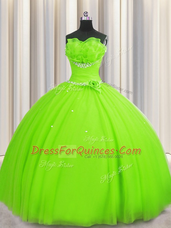 Exquisite Handcrafted Flower Strapless Neckline Beading and Sequins and Hand Made Flower 15th Birthday Dress Sleeveless Lace Up