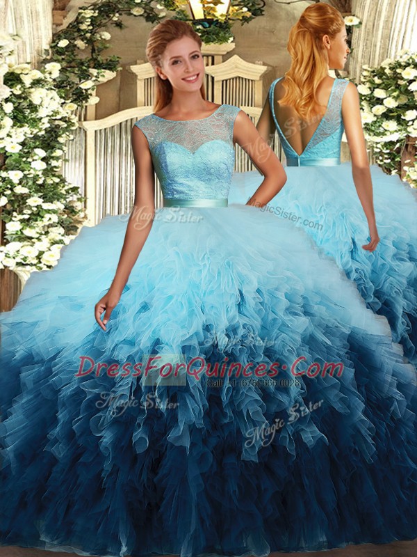 Exquisite Sleeveless Ruffles Backless Quince Ball Gowns
