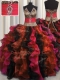 Extravagant Leopard V Neck Floor Length Multi-color Ball Gown Prom Dress Organza Sleeveless Beading and Ruffles