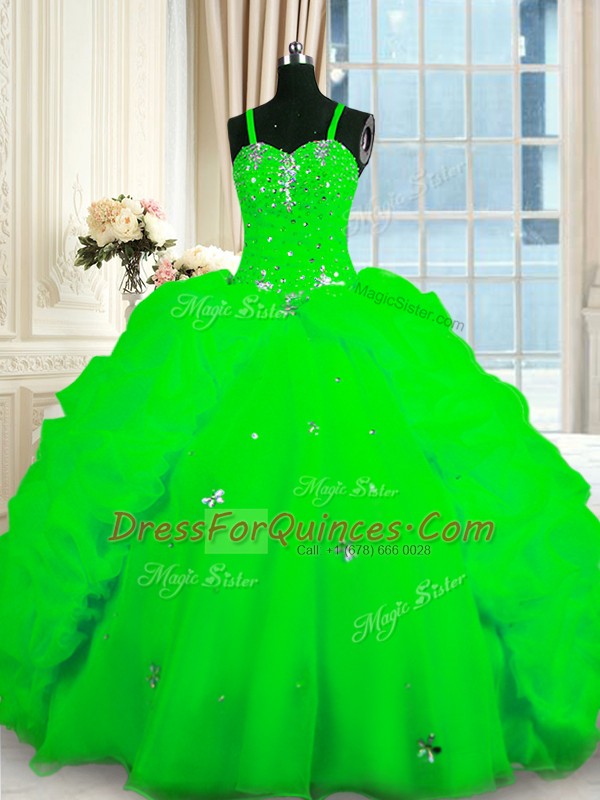 Extravagant Spaghetti Straps Sleeveless Organza Vestidos de Quinceanera Beading and Pick Ups Lace Up