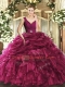 Eye-catching Burgundy Sleeveless Organza Backless Vestidos de Quinceanera for Sweet 16 and Quinceanera