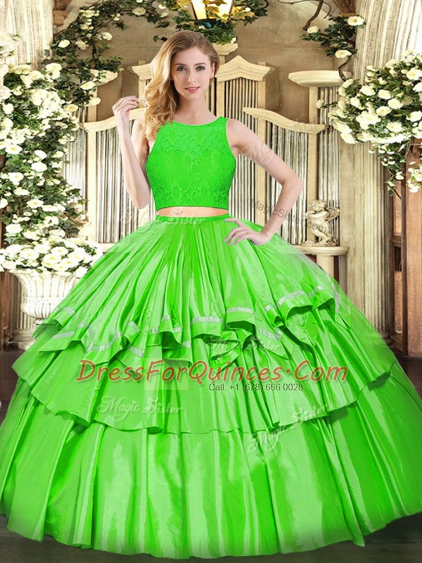 Eye-catching Green Quinceanera Gowns Military Ball and Sweet 16 and Quinceanera with Ruffled Layers Scoop Sleeveless Zipper