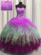 Fabulous Visible Boning Beading and Ruffles and Sequins Sweet 16 Dress Multi-color Lace Up Sleeveless Floor Length