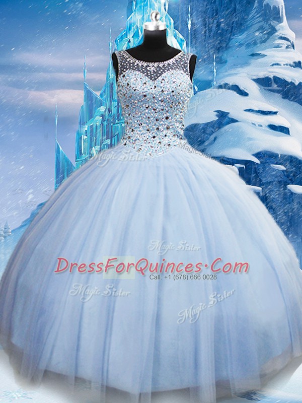 Flare Light Blue Sleeveless Beading Floor Length Quinceanera Gown