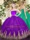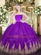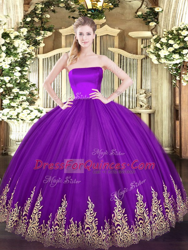 Flare Purple Strapless Zipper Appliques 15 Quinceanera Dress Sleeveless