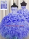 Flirting Visible Boning Purple Sleeveless Beading and Ruffles and Pick Ups Floor Length Sweet 16 Quinceanera Dress