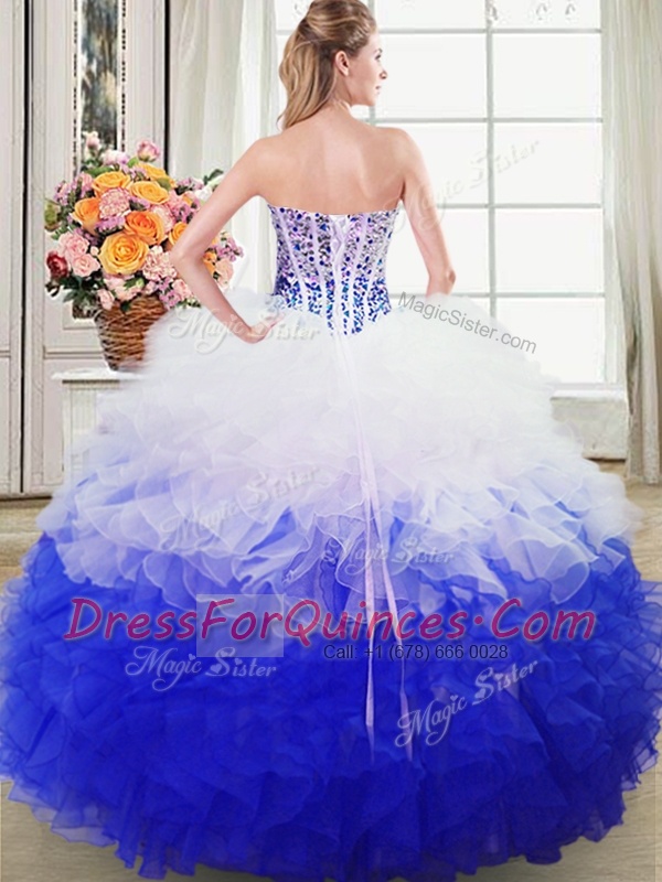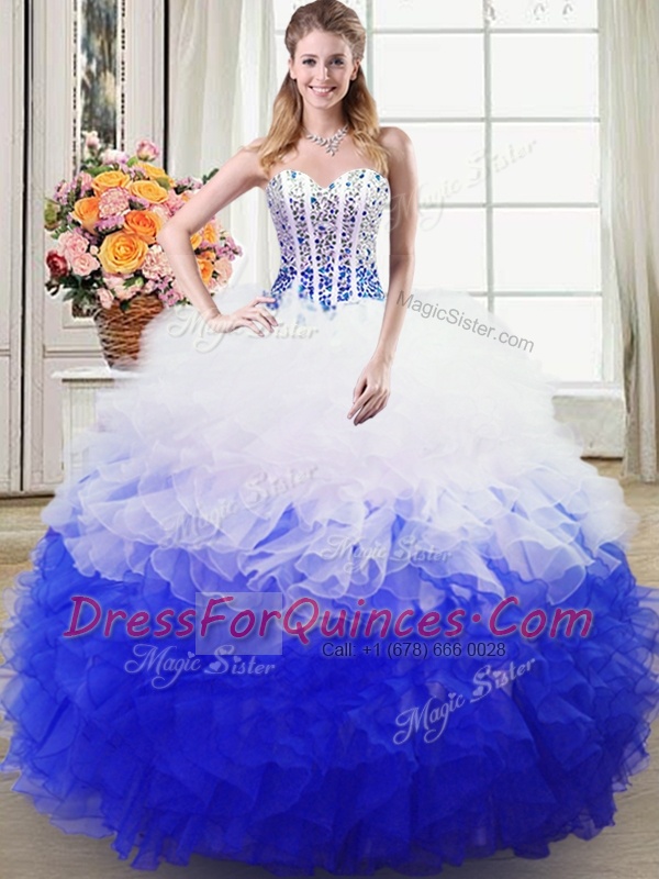 Floor Length Blue And White Quinceanera Dress Sweetheart Sleeveless Lace Up