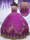 Floor Length Fuchsia Sweet 16 Dress Tulle Sleeveless Appliques