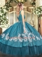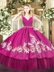 Fuchsia Ball Gowns V-neck Sleeveless Satin and Tulle Floor Length Zipper Embroidery Vestidos de Quinceanera