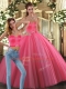 Graceful Sleeveless Tulle Floor Length Lace Up Sweet 16 Quinceanera Dress in Coral Red with Beading