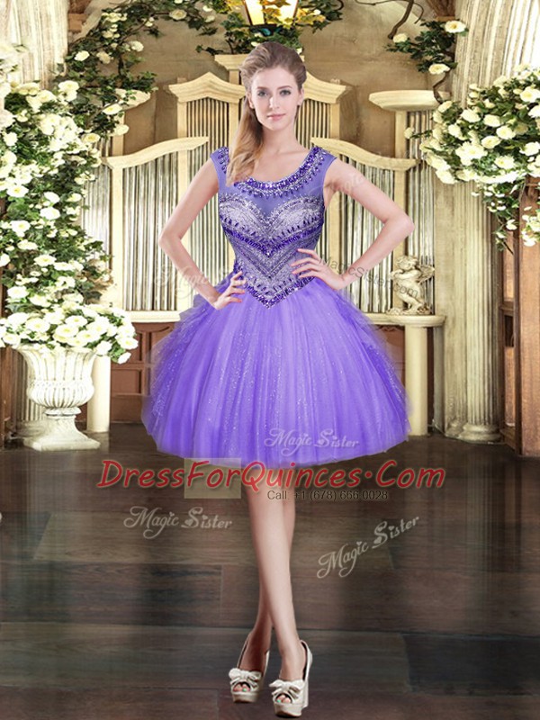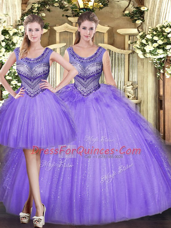 Inexpensive Lavender Lace Up 15 Quinceanera Dress Beading and Ruffles Sleeveless Floor Length
