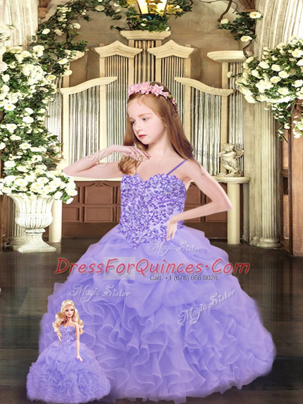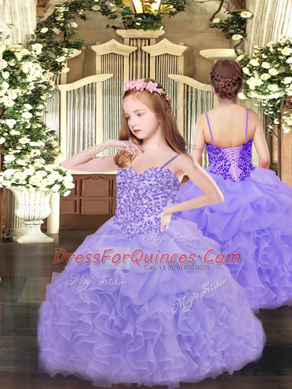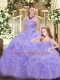 Lavender Ball Gowns Sweetheart Sleeveless Organza Floor Length Lace Up Beading and Ruffles Quinceanera Gown