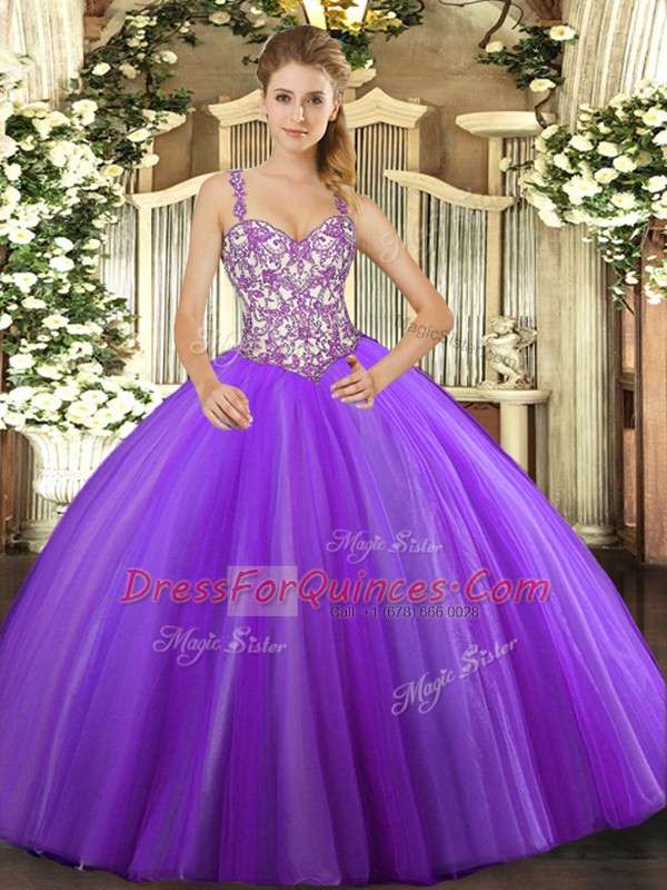 Lavender Sleeveless Floor Length Beading and Appliques Lace Up Quinceanera Dress