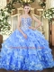 Luxurious Blue Sweet 16 Dress Military Ball and Sweet 16 and Quinceanera with Beading and Ruffled Layers Sweetheart Sleeveless Lace Up
