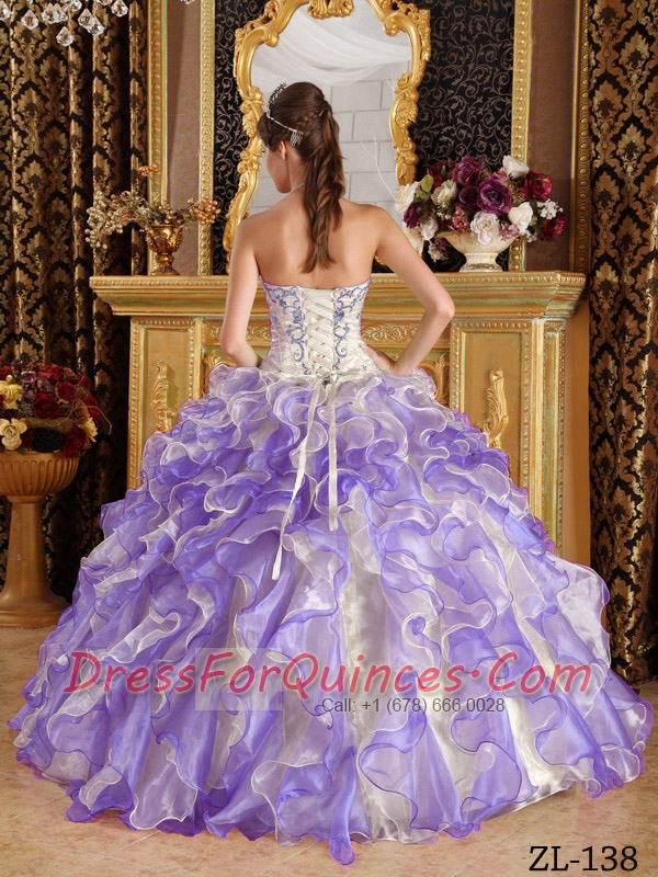 Modest Quinceanera Dress In Purple With Sweetheart Floor-length Organza Appliques In 2013