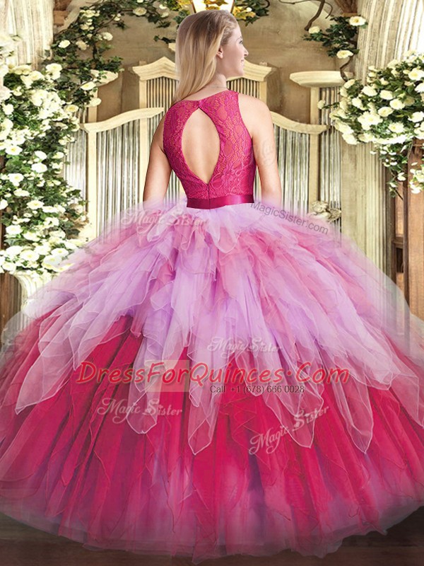Modest Sleeveless Organza Floor Length Zipper Quinceanera Dresses in Multi-color with Ruffles
